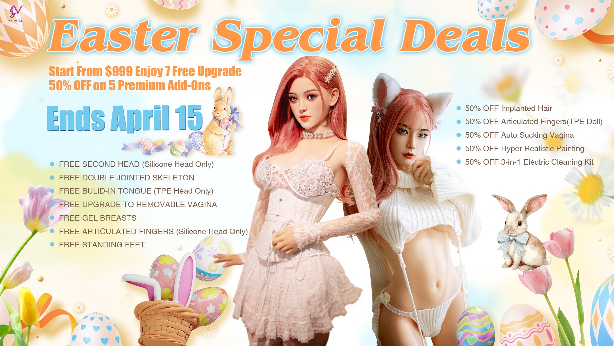 Easter Special Deals is here! Discover our collection of premium sexy love dolls crafted from high-quality TPE and silicone, enjoy Easter discounts on affordable love dolls.